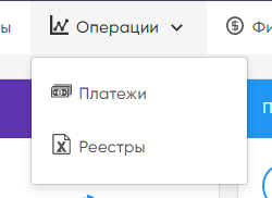 При переходе к разделу Операции в главном меню требуется выбрать из выпадающего списка один из подразделов: Платежи или Реестры.