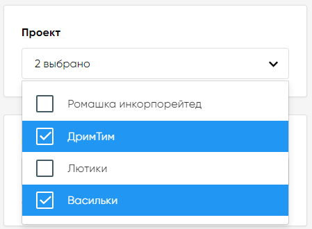 По умолчанию для данного поля установлено значение «Все проекты». |