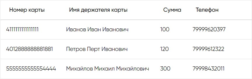 номер карты для проведения выплаты;