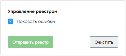 Ниже отобразится блок «Управление реестрами» с чек-боксом «Показать ошибки» и кнопками